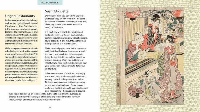 Also included are interesting facts and etiquette, such as the right way to hold chopsticks, whether (or not) you should mix your wasabi and soy and the correct word for pickled ginger.