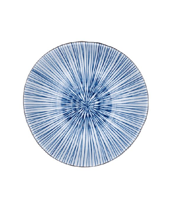 צורה א-סימטרית עם דוגמת פסים כחולים עדינים.