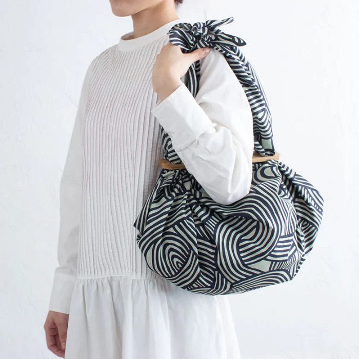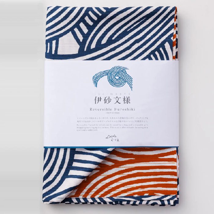 FUROSHIKI are square shaped cloths used in Japan to wrap items and carry them. Being made of cloth, FUROSHIKI can be stored easily, are very light and can wrap many different kinds of shapes. For those reasons, FUROSHIKI are convenient for day-to-day needs. They can be used to wrap several small goods together or wrap one bulky item, like a wine bottle or a large sake bottle. In addition to these advantages, FUROSHIKI can just be washed like other cloths when they get dirty. Japanese re-acknowledged that FUROSHIKI are also environmentally friendly, they became even more popular.