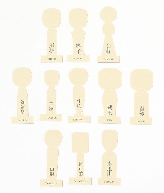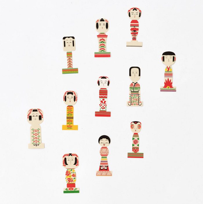 11 kokeshi type as small paper bookmark