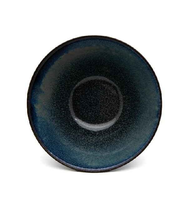 עשויה קרמיקה איכותית בגוונים עמוקים של כחול כהה, שחור ואפור עדין