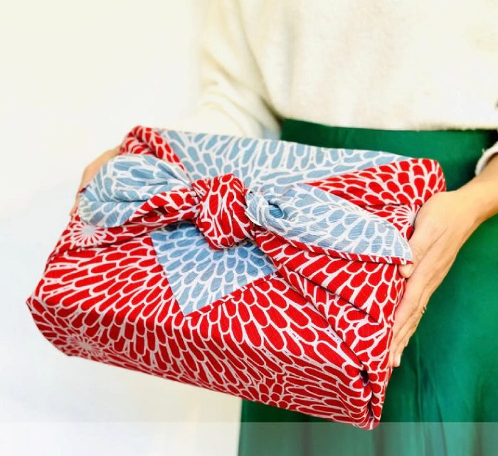 FUROSHIKI are square shaped cloths used in Japan to wrap items and carry them. Being made of cloth, FUROSHIKI can be stored easily, are very light and can wrap many different kinds of shapes. For those reasons, FUROSHIKI are convenient for day-to-day needs. They can be used to wrap several small goods together or wrap one bulky item, like a wine bottle or a large sake bottle. In addition to these advantages, FUROSHIKI can just be washed like other cloths when they get dirty. Japanese re-acknowledged that FUROSHIKI are also environmentally friendly, they became even more popular.